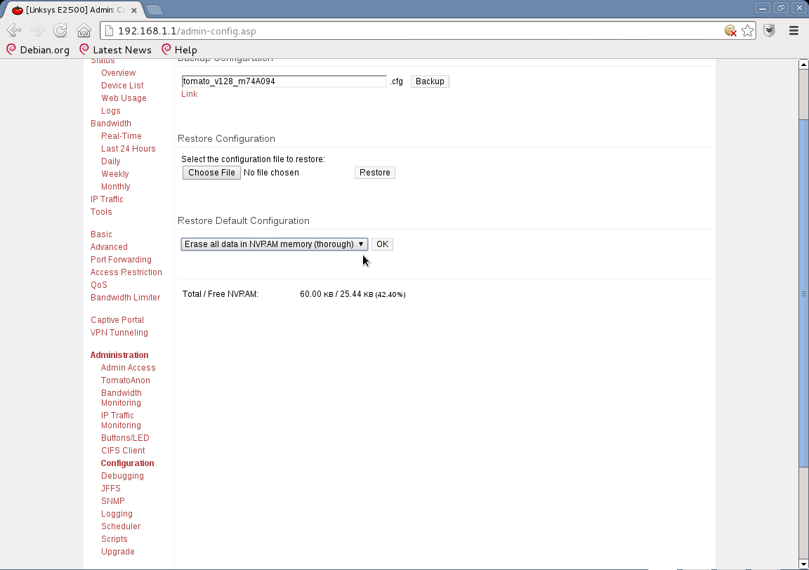 cd ~/Downloads wget http://tomato.groov.pl/download/K26RT-N/build5x-110-EN/Linksys%20E-series/tomato-E2500-NVRAM60K-1.28.RT-N5x-MIPSR2-110-Max.bin