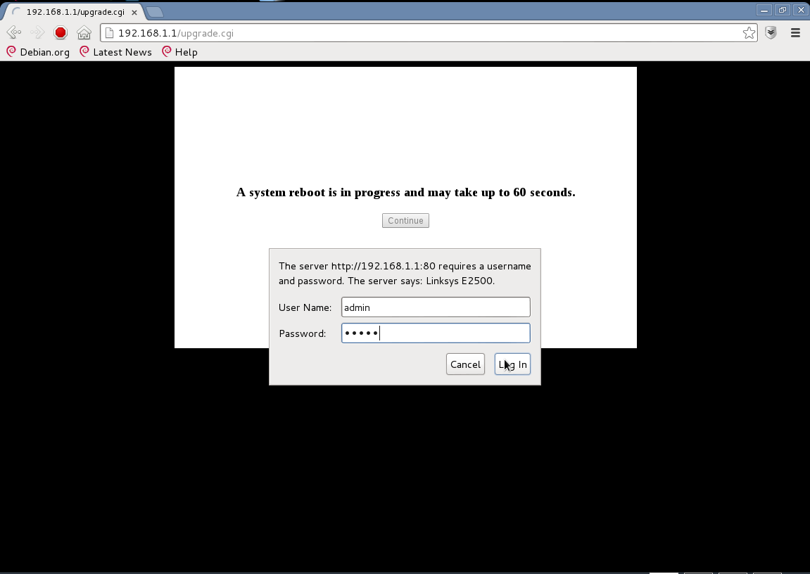 I unplugged the power from the router, and plugged it in again, and I could log in: